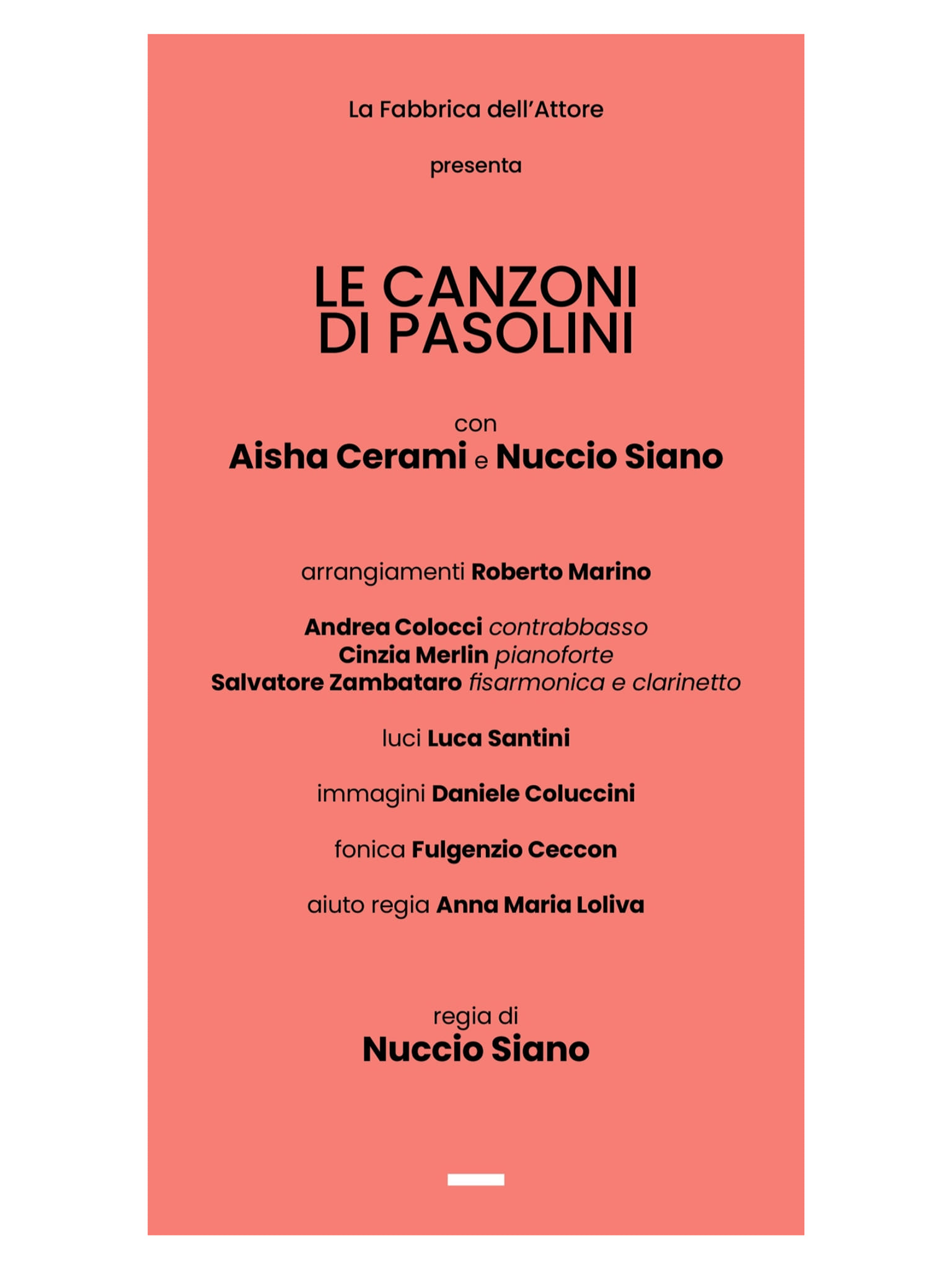 Domenica 5 Marzo 2023 | Ore 20.45 – Le Canzoni di Pasolini – Teatro Pasolini – Casarsa della Delizia (PN) – Produzione La Fabbrica dell’Attore